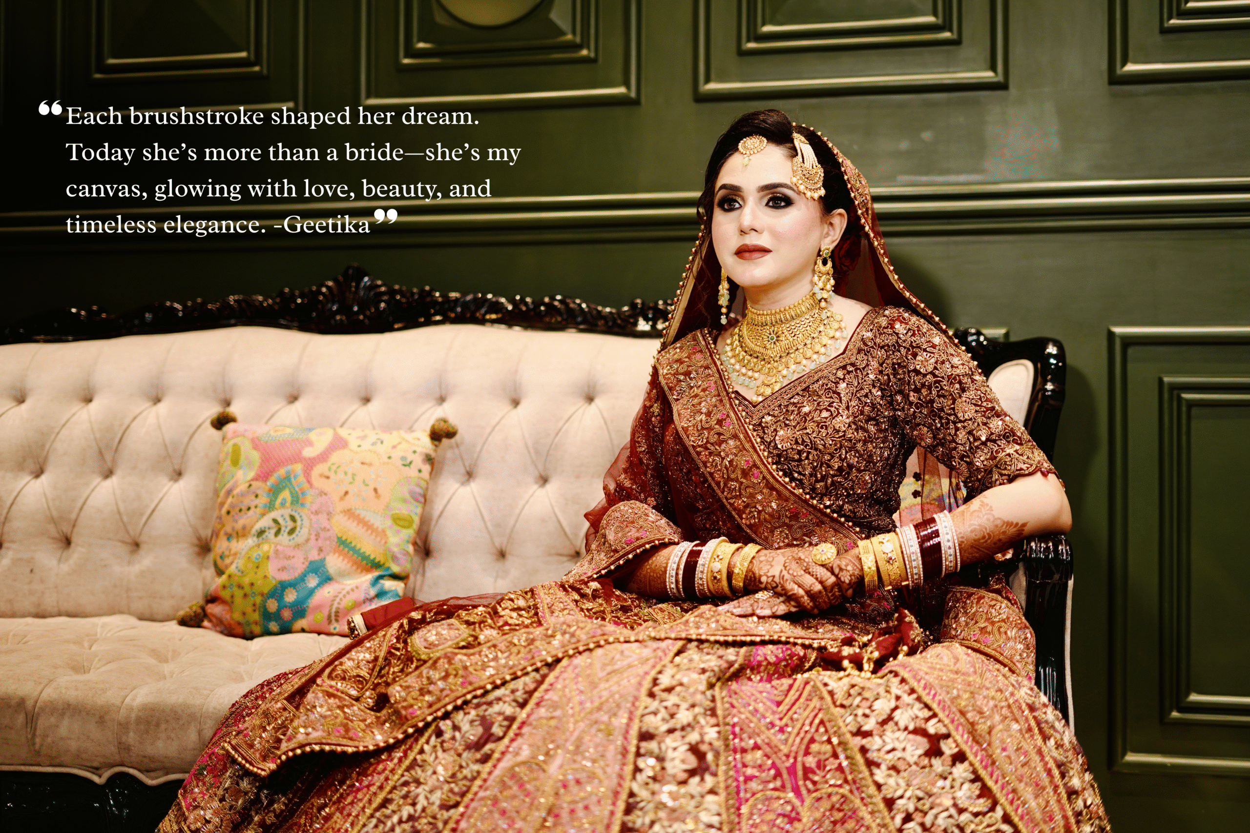 Whether it's a natural day look or full glam, your makeup is done by Geetika with full attention to detail.