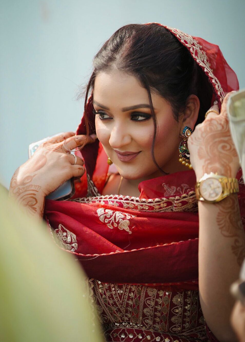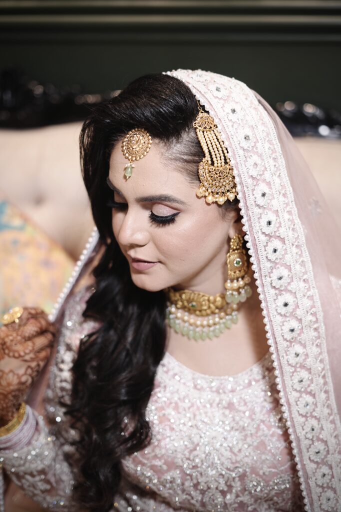 She uses premium products and ensures comfort, long wear, and glowing confidence – so you shine on your big day.